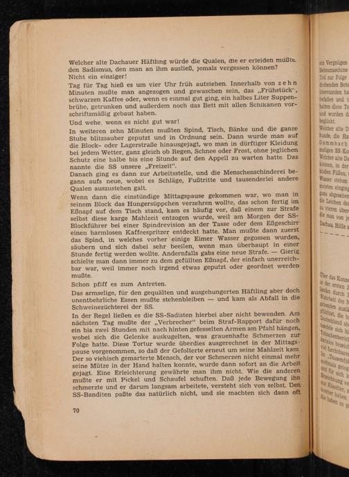 Welcher alte Dachauer Häftling würde die Qualen, die er erleiden mußte. den Sadismus, den man an ihm auslieẞ, jemals vergessen können?