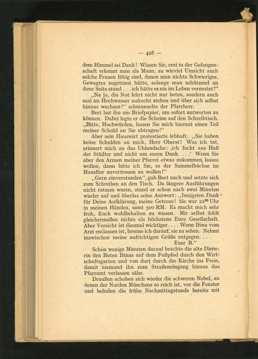 Bert bat ihn um Briefpapier, um sofort antworten zu können. Dabei legte er die Scheine auf den Schreibtisch. ,, Bitte, Hochwürden, lassen Sie mich hiermit einen Teil meiner Schuld an Sie abtragen!"