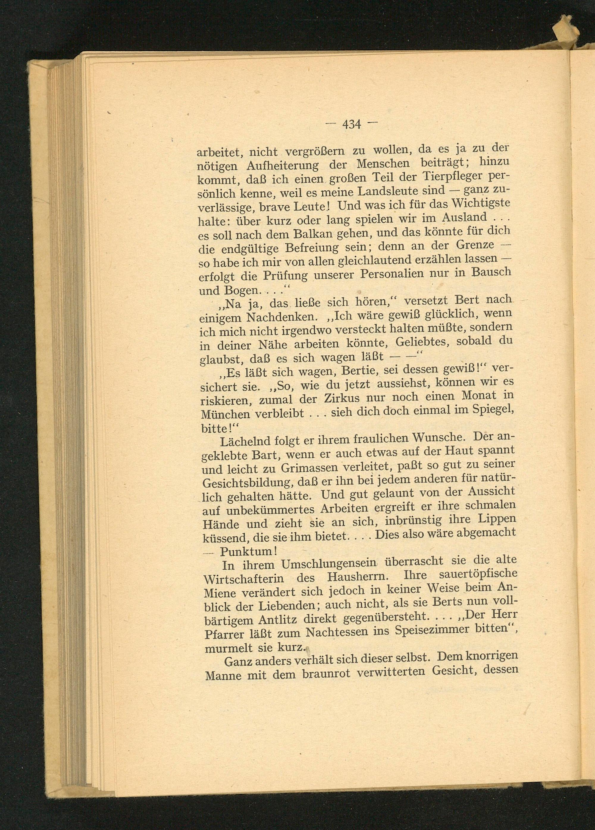 „Es läßt sich wagen, Bertie, sei dessen gewiß!‘ ver- sichert sie. ‚‚So, wie du jetzt aussiehst, können wir es riskieren, zumal der Zirkus nur noch einen Monat in München verbleibt..... sieh dich doch einmal im Spiegel, bitte!“