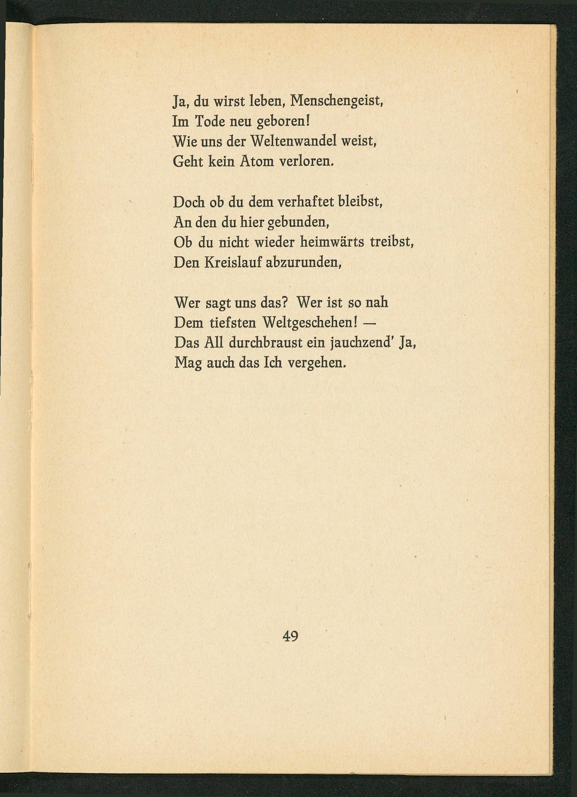 Ja, du wirst leben, Menschengeist, Im Tode neu geboren!