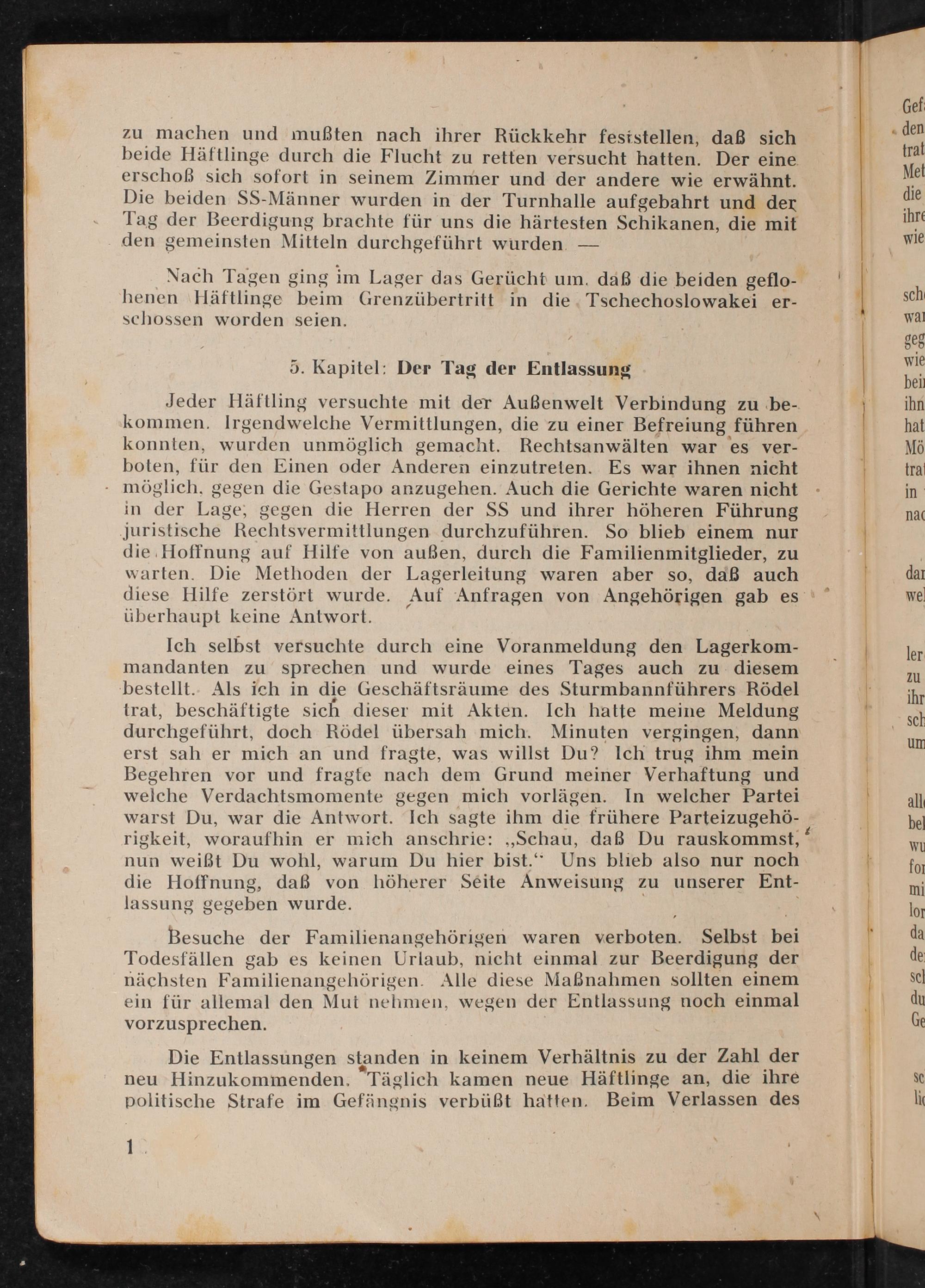 Nach Tagen ging im Lager das Gerücht um. daß die beiden geflo- henen‘Häftlinge beim Grenzübertritt in die. Tschechoslowakei er- schossen worden seien.