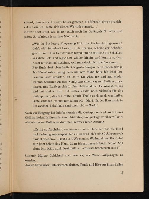 werden. Am 27.November 1944 wurden Mutter, Trude und Else aus ihren Zellen