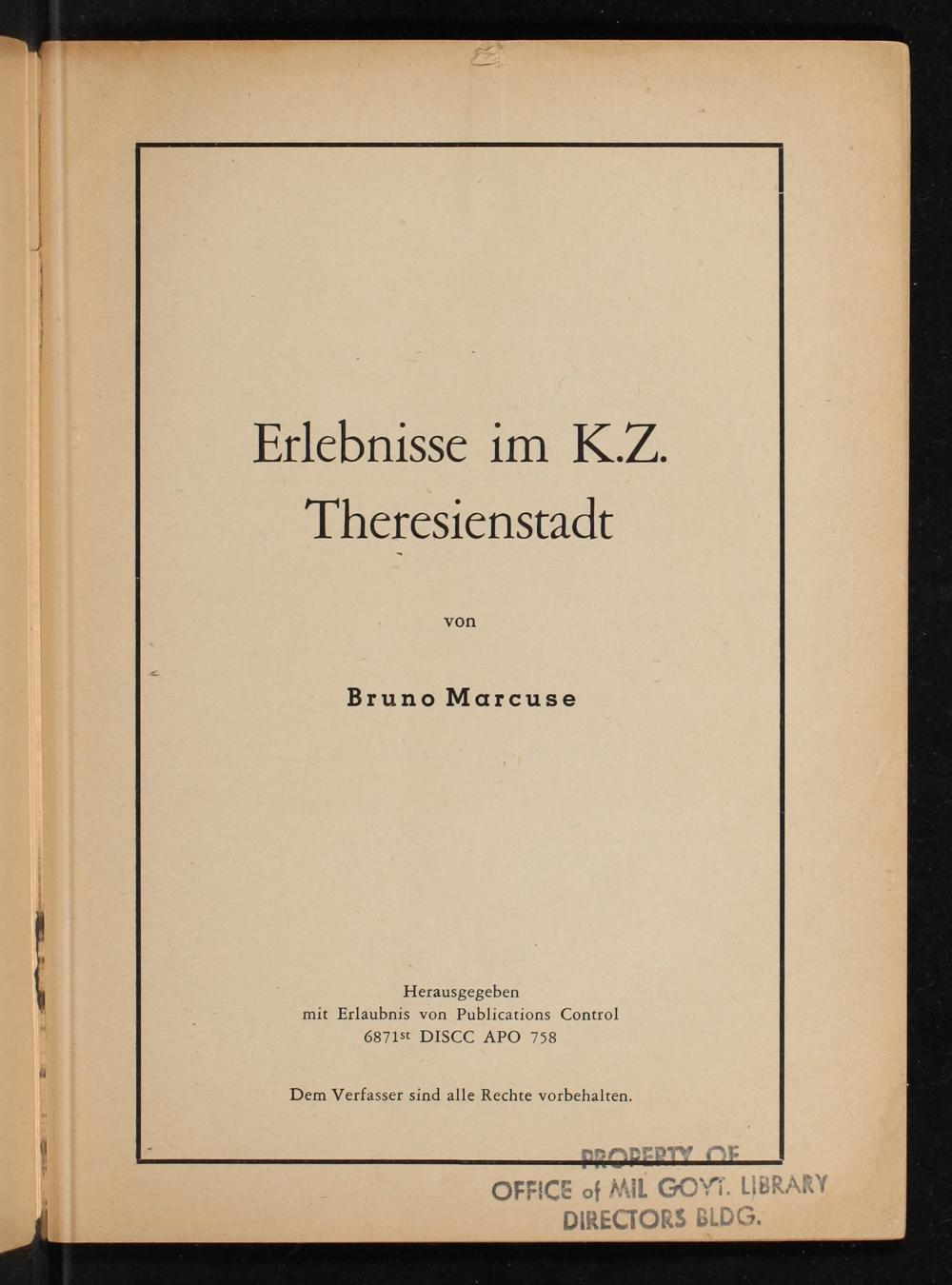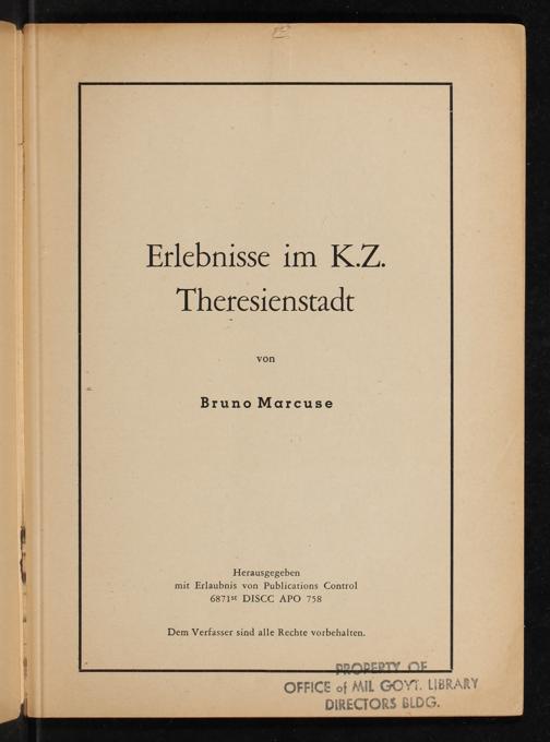 Erlebnisse im K.Z. Theresienstadt / von Bruno Marcuse