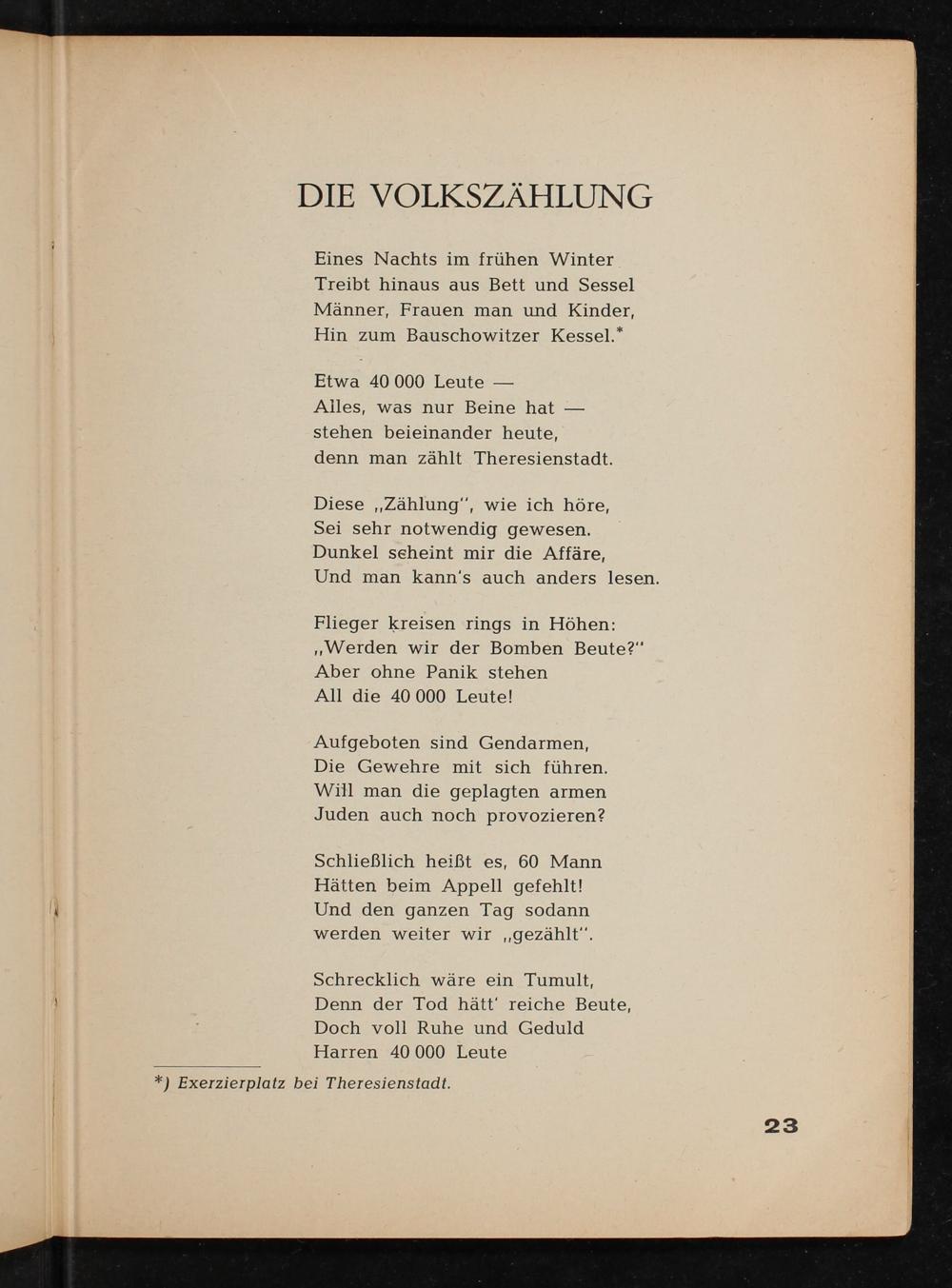 Eines Nachts im frühen Winter Treibt hinaus aus Bett und Sessel Männer, Frauen man und Kinder, Hin zum Bauschowitzer Kessel.*