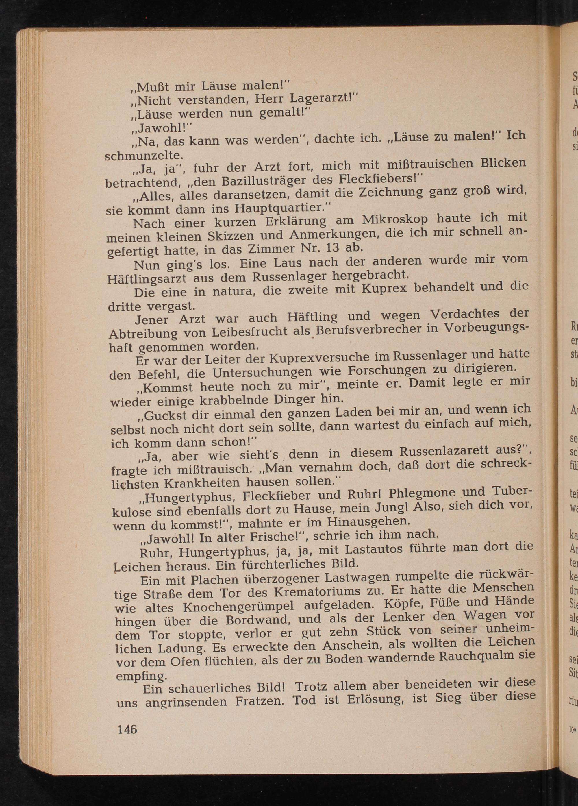Nun ging's los. Eine Laus nach der anderen wurde mir vom Häftlingsarzt aus dem Russenlager hergebracht.