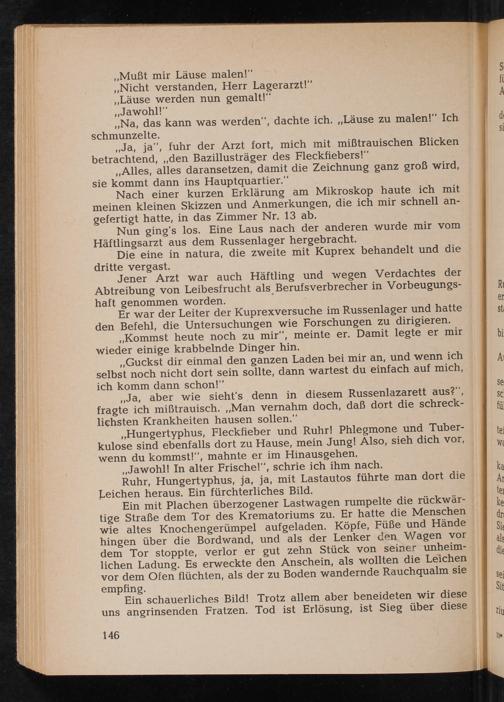 „Hungertyphus, Fleckfieber und Ruhr! Phlegmone und Tuber- kulose sind ebenfalls dort zu Hause, mein Jung! Also, sieh dich vor, wenn du kommst!‘, mahnte er im Hinausgehen,