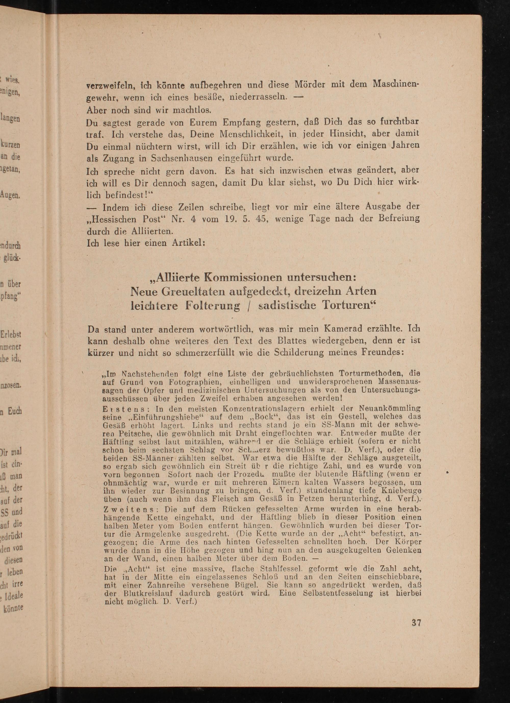 Indem ich diese Zeilen schreibe, liegt vor mir eine ältere Ausgabe der ,, Hessischen Post" Nr. 4 vom 19. 5. 45, wenige Tage nach der Befreiung durch die Alliierten.