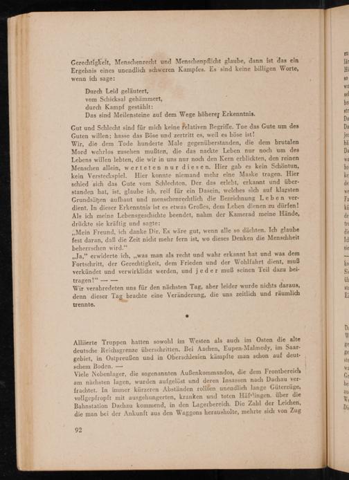 Gerechtigkeit, Menschenrecht und Menschenpflicht glaube, dann ist das ein Ergebnis eines unendlich schweren Kampfes. Es sind keine billigen Worte, wenn ich sage: