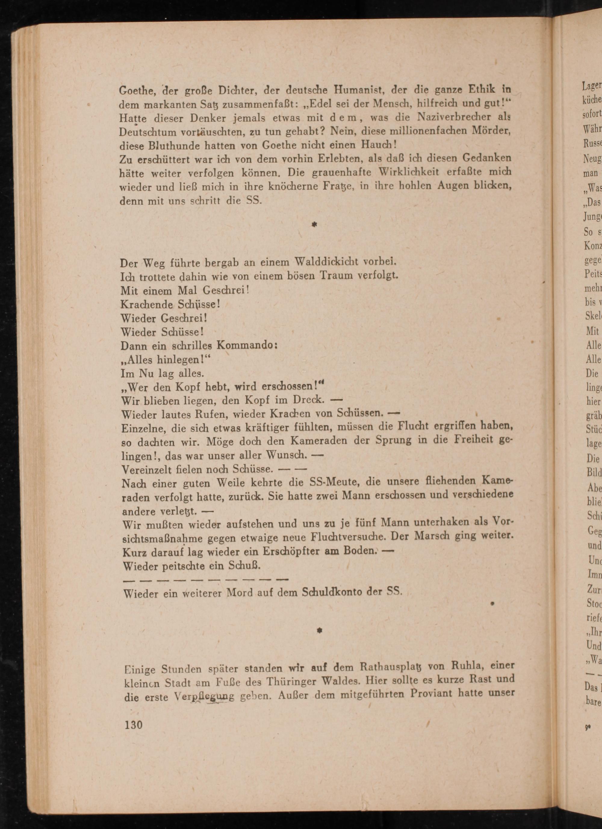 Zu erschüttert war ich von dem vorhin Erlebten, als daß ich diesen Gedanken hätte weiter verfolgen können. Die grauenhafte Wirklichkeit erfaßte mich wieder und ließ mich in ihre knöcherne Fratze, in ihre hohlen Augen blicken, denn mit uns schritt die SS.