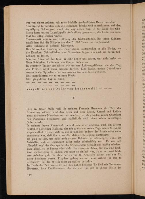 Hier an dieser Stelle will ich meinem Freunde Hermann ein Blatt der Erinnerung widmen und den Leser mit dem Leben, Kampf und Leiden eines aufrechten Menschen vertraut machen, der als gerader, reiner Charakter den Nazismus bekämpfte und schließlich auch eines seiner unzähligen Opfer wurde.