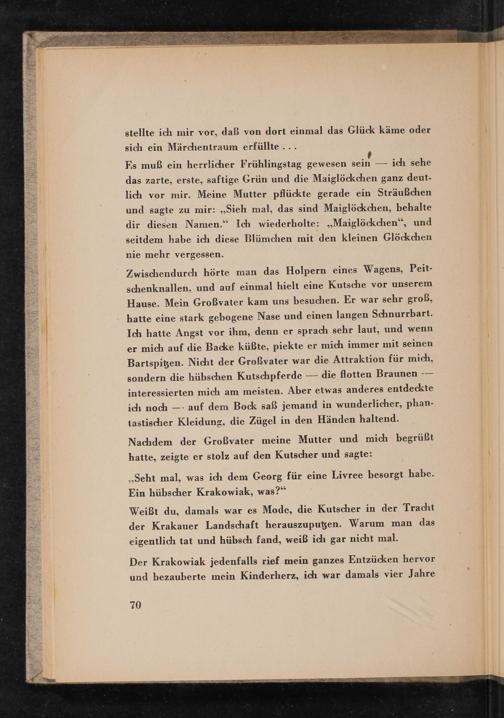 Weißt du, damals war es Mode, die Kutscher in der Tracht der Krakauer Landschaft herauszuputzen. Warum man das eigentlich tat und hübsch fand, weiß ich gar nicht mal.