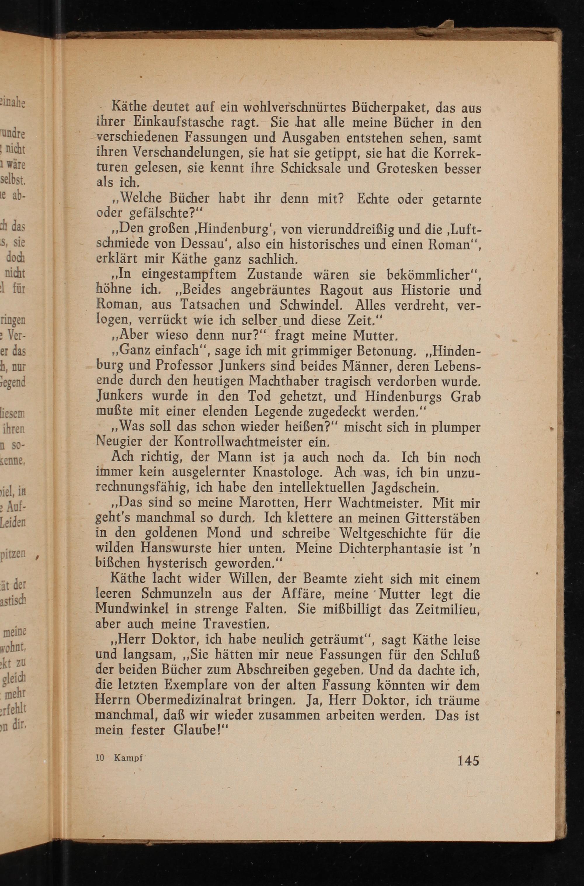 ,, In eingestampftem Zustande wären sie bekömmlicher", höhne ich. ,, Beides angebräuntes Ragout aus Historie und Roman, aus Tatsachen und Schwindel. Alles verdreht, verlogen, verrückt wie ich selber und diese Zeit."
