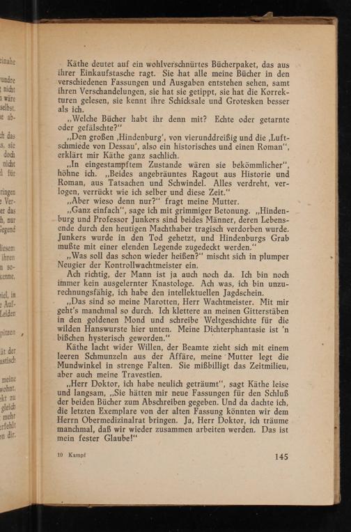 ,, Den großen, Hindenburg', von vierunddreißig und die, Luftschmiede von Dessau ', also ein historisches und einen Roman", erklärt mir Käthe ganz sachlich.