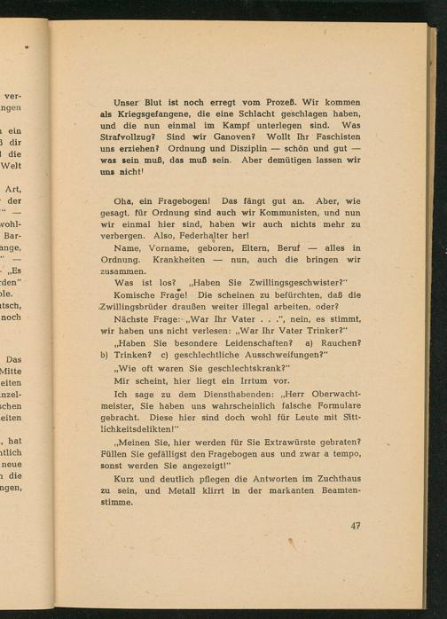 Ich sage zu dem Diensthabenden: ,, Herr Oberwachtmeister, Sie haben uns wahrscheinlich falsche Formulare gebracht. Diese hier sind doch wohl für Leute mit Sitt