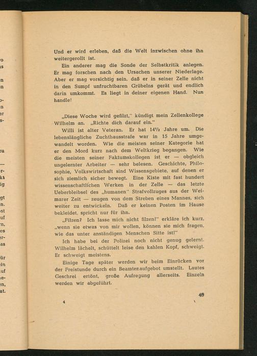 „Diese Woche wird gefilzt,“ kündigt mein Zellenkollege Wilhelm an.„Richte dich darauf ein.“