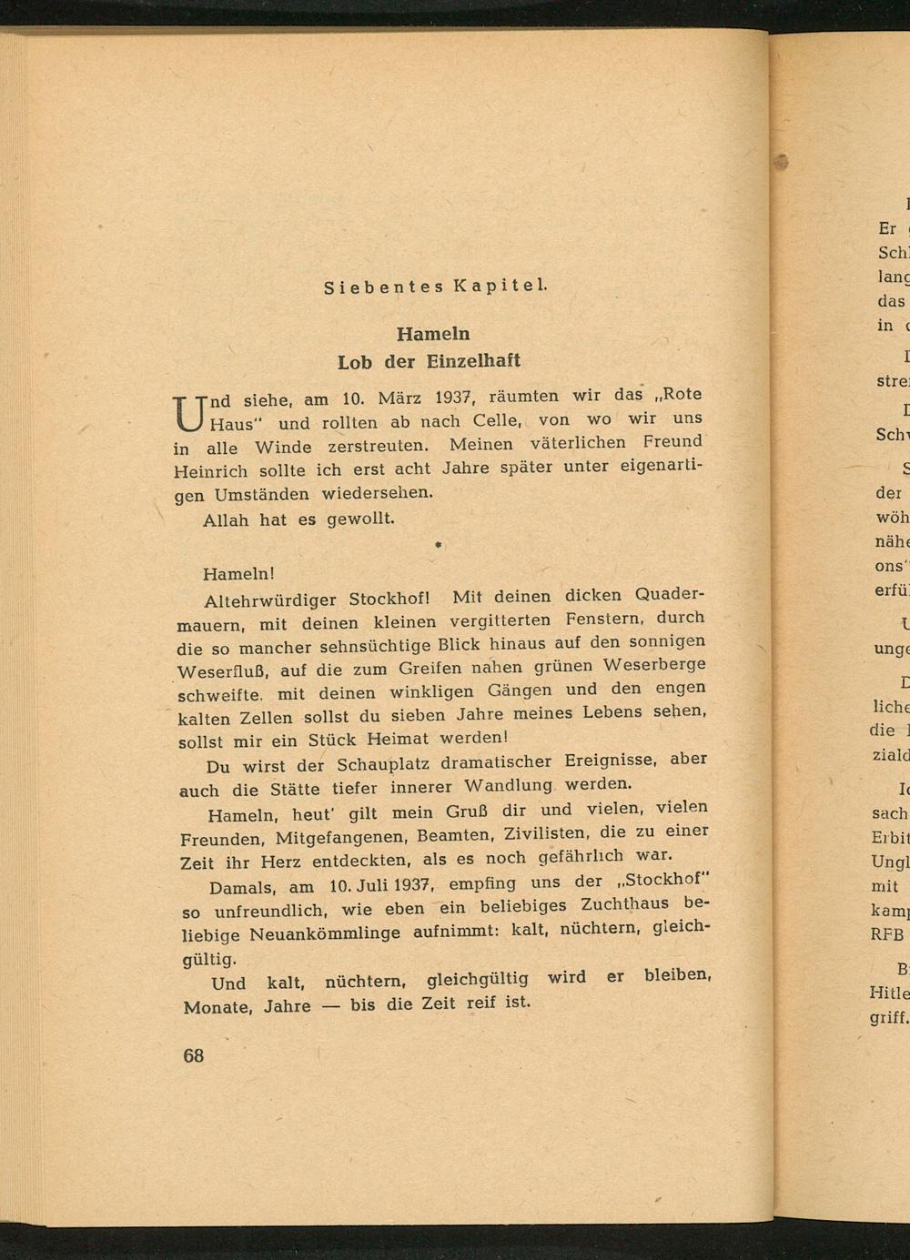 Hameln , heut' gilt mein Gruß dir und vielen, vielen Freunden, Mitgefangenen, Beamten, Zivilisten, die zu einer Zeit ihr Herz entdeckten, als es noch gefährlich war.