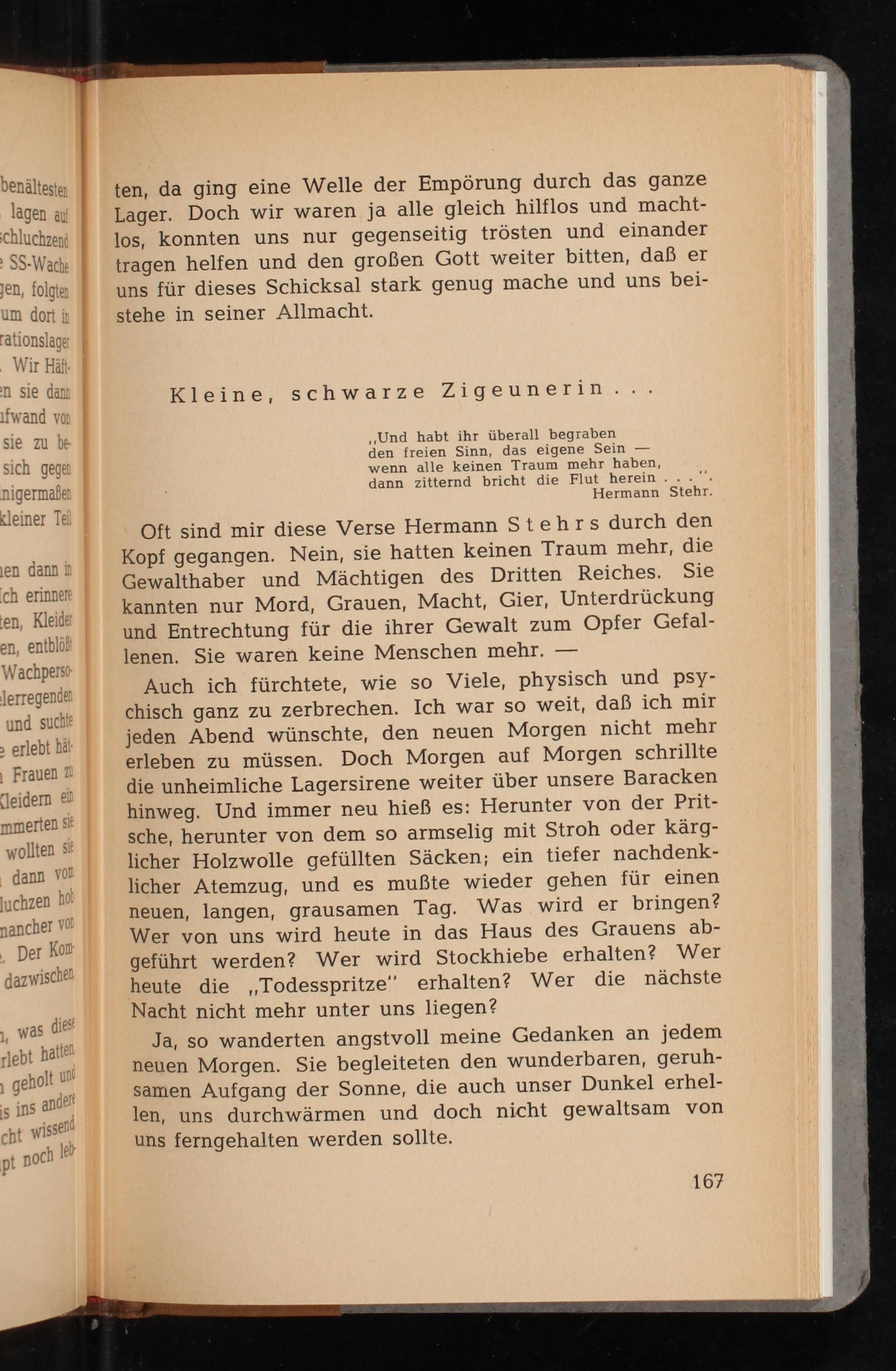 Oft sind mir diese Verse Hermann Stehrs durch den Kopf gegangen. Nein, sie hatten keinen Traum mehr, die Gewalthaber und Mächtigen des Dritten Reiches . Sie kannten nur Mord, Grauen, Macht, Gier, Unterdrückung und Entrechtung für die ihrer Gewalt zum Opfer Gefallenen . Sie waren keine Menschen mehr.