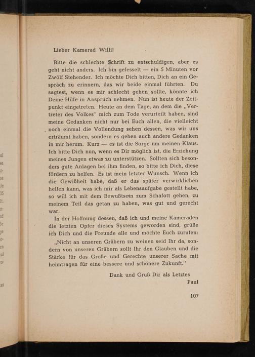 In der Hoffnung dessen, daß ich und meine Kameraden die letzten Opfer dieses Systems geworden sind, grüße ich Dich und die Freunde alle und möchte Euch zurufen: