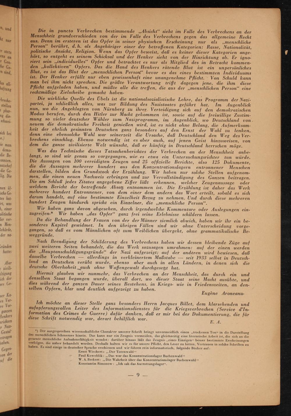 Ich möchte an dieser Stelle ganz besonders Herrn Jacques Billet, dem klarsehenden und aufopferungsvollen Leiter des Informationsdienstes für die Kriegsverbrechen(Service d’In- formation des Crimes de Guerre ) dafür danken, daß er mir bei der Dokumentierung, die für diese Schrift notwendig war, derart behilflich war. EA