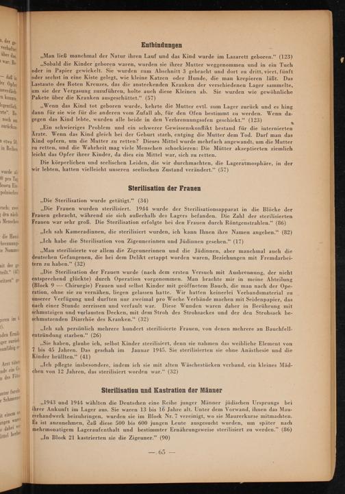 ,, Ich sah Kameradinnen, die sterilisiert wurden, ich kann Ihnen ihre Namen angeben."( 82) ,, Ich habe die Sterilisation von Zigeunerinnen und Jüdinnen gesehen."( 17)