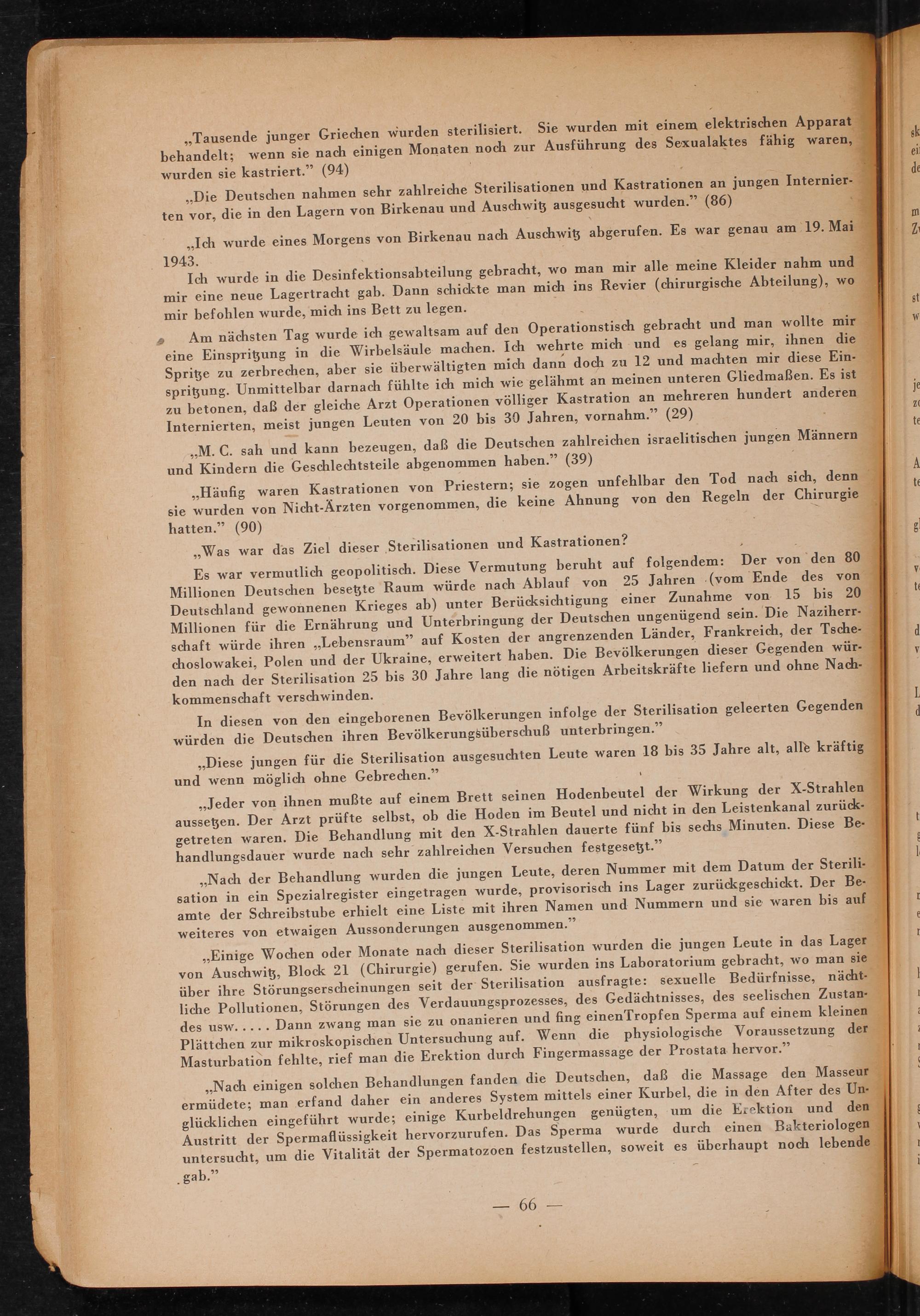 ,, Die Deutschen nahmen sehr zahlreiche Sterilisationen und Kastrationen an jungen Internierten vor, die in den Lagern von Birkenau und Auschwitz ausgesucht wurden."( 86)