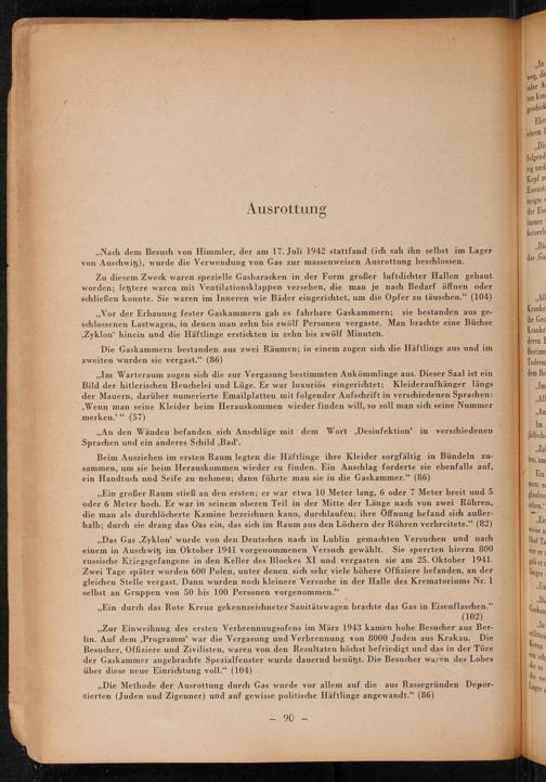 ,, Die Methode der Ausrottung durch Gas wurde vor allem auf die aus Rassegründen Deportierten( Juden und Zigeuner) und auf gewisse politische Häftlinge angewandt."( 86)
