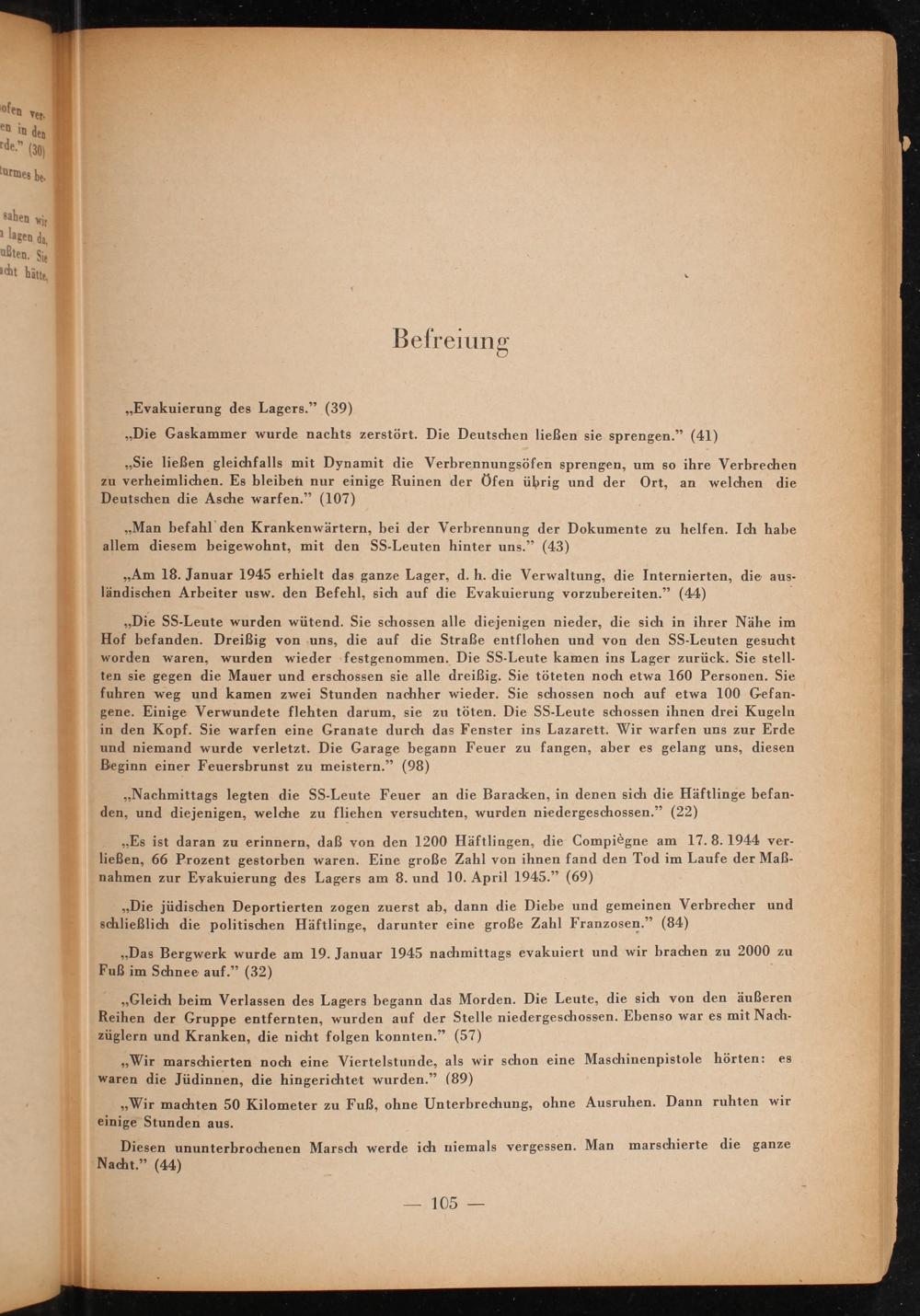 ,, Am 18. Januar 1945 erhielt das ganze Lager, d. h. die Verwaltung, die Internierten, die ausländischen Arbeiter usw. den Befehl, sich auf die Evakuierung vorzubereiten."( 44)