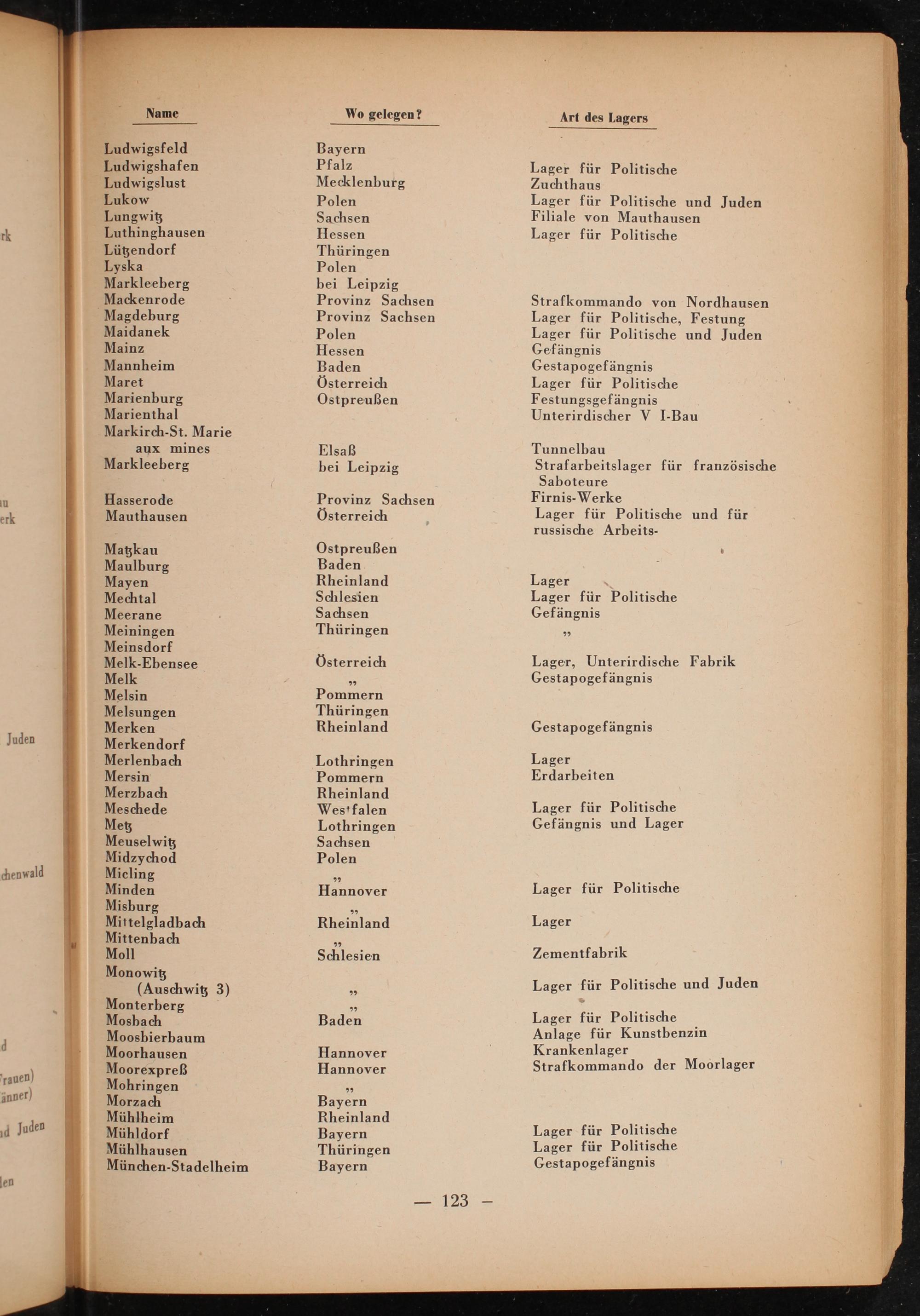 Meuselwitz Midzychod Micling Minden Misburg Mittelgladbach Mittenbach Moll Monowit (Auschwit 3) Monterberg Mosbach Moosbierbaum Moorhausen Moorexpreß Mohringen Morzach Mühlheim Mühldorf Mühlhausen