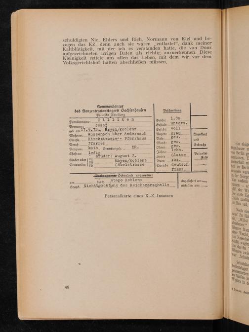 schuldigten Nic. Ehlers und Rich. Normann von Kiel und be­zogen das KZ, denn auch sie waren ,, entlastet", dank meiner Kaltblütigkeit, mit der ich es verstanden hatte, die von Dons aufgezeichneten irrigen Daten als richtig anzuerkennen. Diese Kleinigkeit rettete uns allen das Leben, mit dem wir vor dem Volksgerichtshof hätten abschließen müssen.