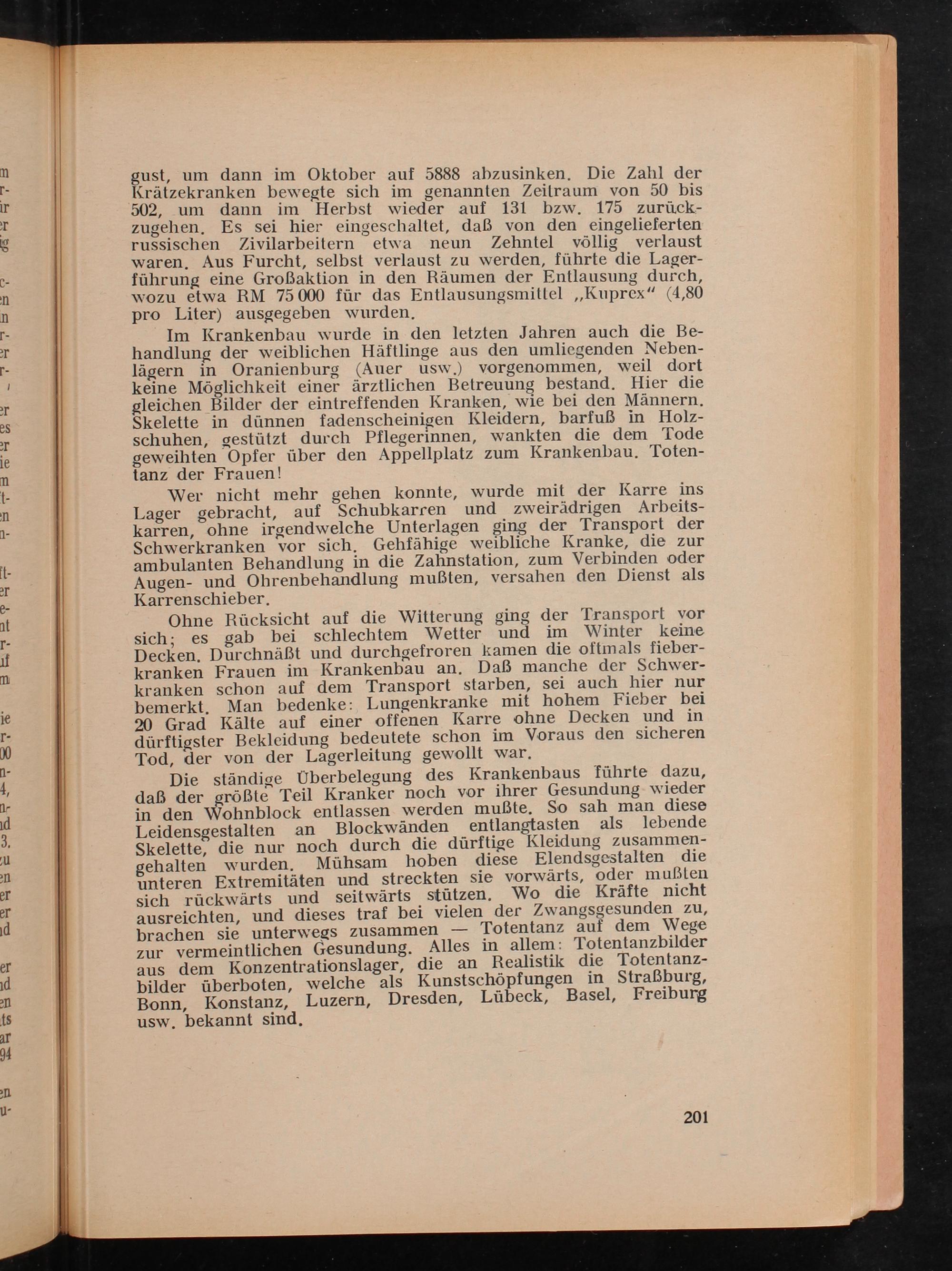 aus dem Konzentrationslager, die an Realistik die Totentanz- bilder überboten, welche als Kunstschöpfungen in Straßburg , Bonn, Konstanz, Luzern, Dresden, Lübeck, Basel, Freiburg