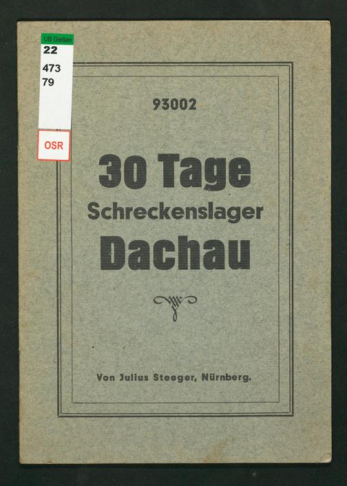 30 Tage Schreckenslager Dachau / von Julius Steeger