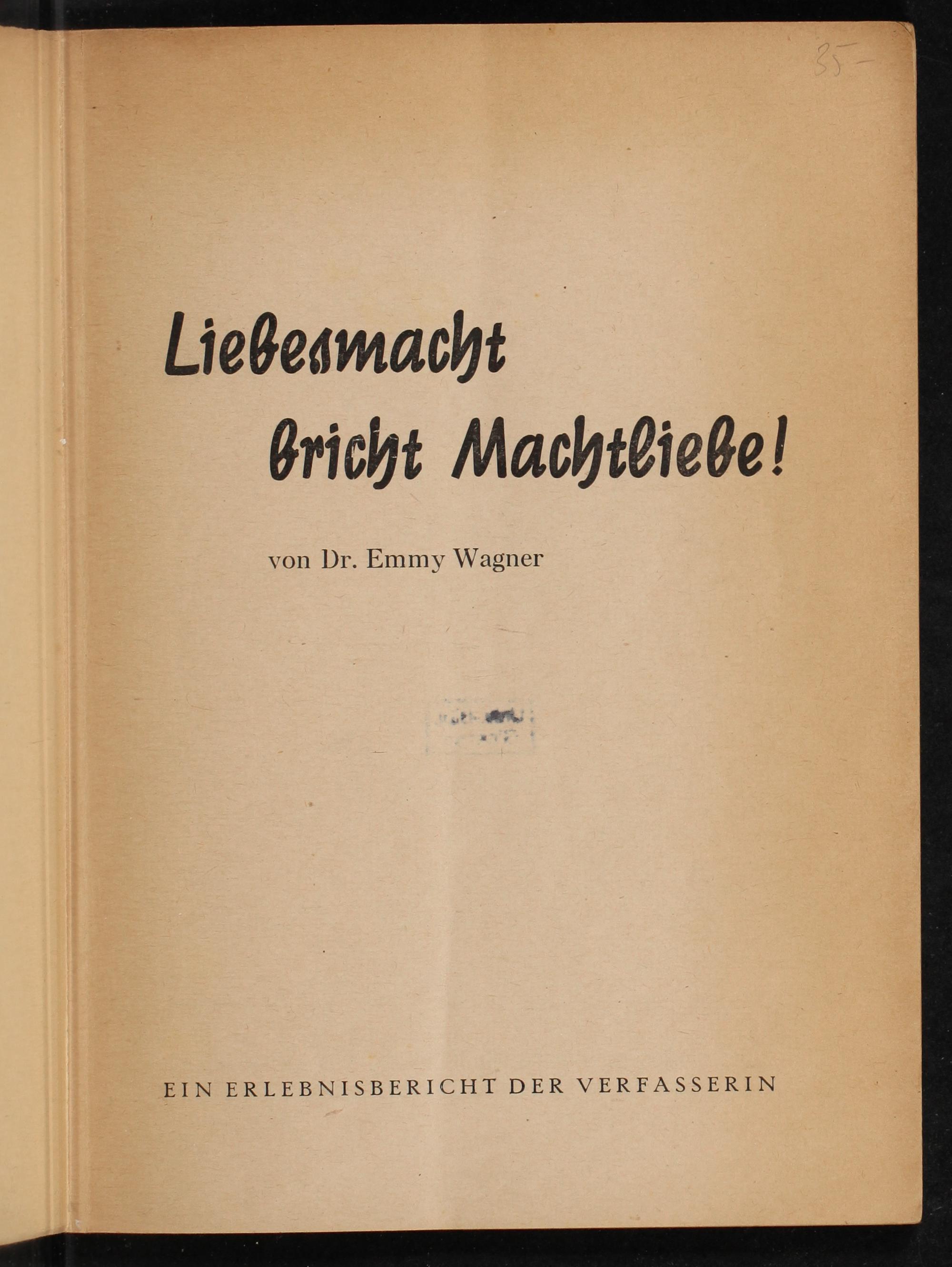 Liebesmacht bricht Machtliebe! : Ein Erlebnisbericht der Verfasserin / von Emmy Wagner