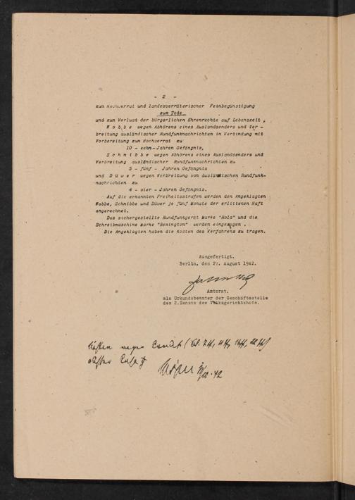 als Urkundsbeamter der Geschäftsstelle des 2.Senats des Volksgerichtshofs.