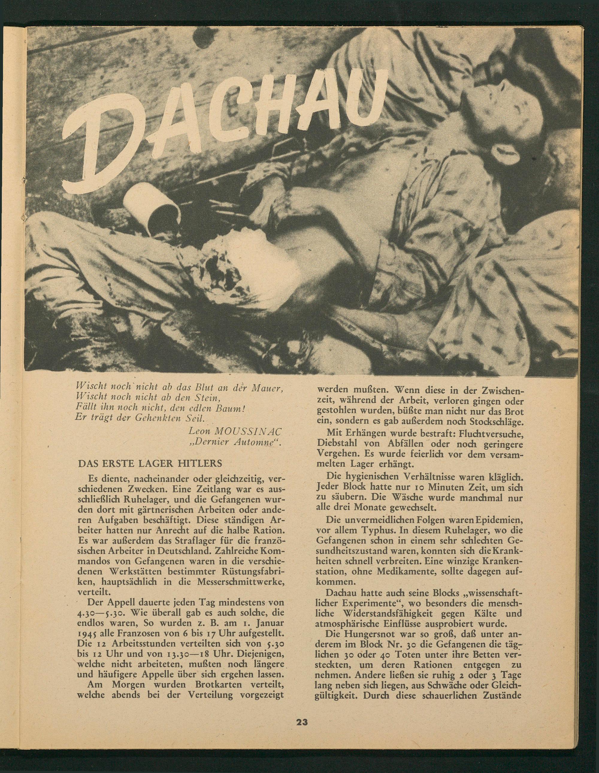 Dachau hatte auch seine Blocks ,, wissenschaftlicher Experimente", wo besonders die menschliche Widerstandsfähigkeit gegen Kälte und atmosphärische Einflüsse ausprobiert wurde.