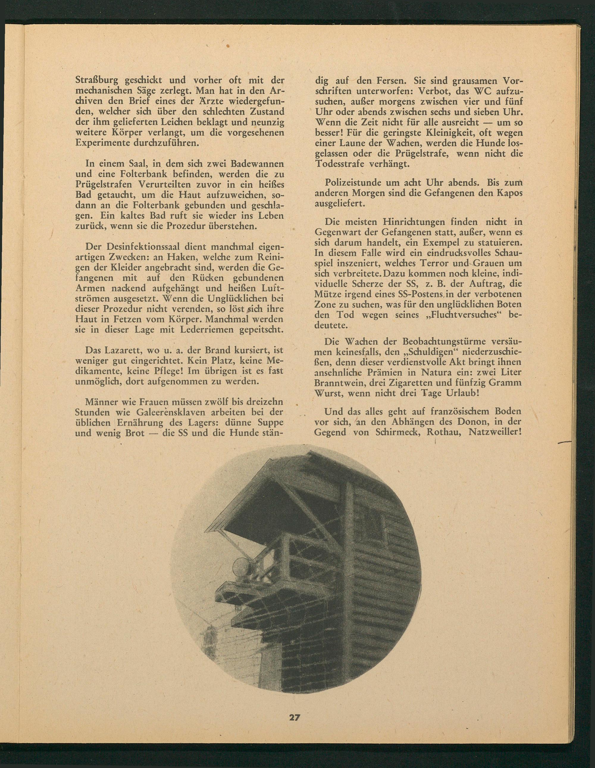 dig auf den Fersen. Sie sind grausamen Vorschriften unterworfen: Verbot, das WC aufzusuchen, außer morgens zwischen vier und fünf Uhr oder abends zwischen sechs und sieben Uhr. Wenn die Zeit nicht für alle ausreicht um so besser! Für die geringste Kleinigkeit, oft wegen einer Laune der Wachen, werden die Hunde losgelassen oder die Prügelstrafe, wenn nicht die Todesstrafe verhängt.