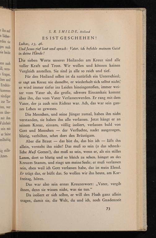 Die sieben Worte unseres Heilandes am Kreuz sind alle voller Kraft und Trost. Wir wollen und können keinen Vergleich anstellen. Sie sind ja alle so reich und tief.