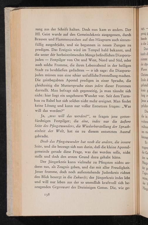 Ja ,,, was will das werden?", so fragen jene gottesfürchtigen Festpilger; die eine, indes nur die äußere Seite des Pfingstwunders, die Wiederherstellung der Spracheinheit der Welt, hat sie zu diesem entsetzten Ausruf gebracht.