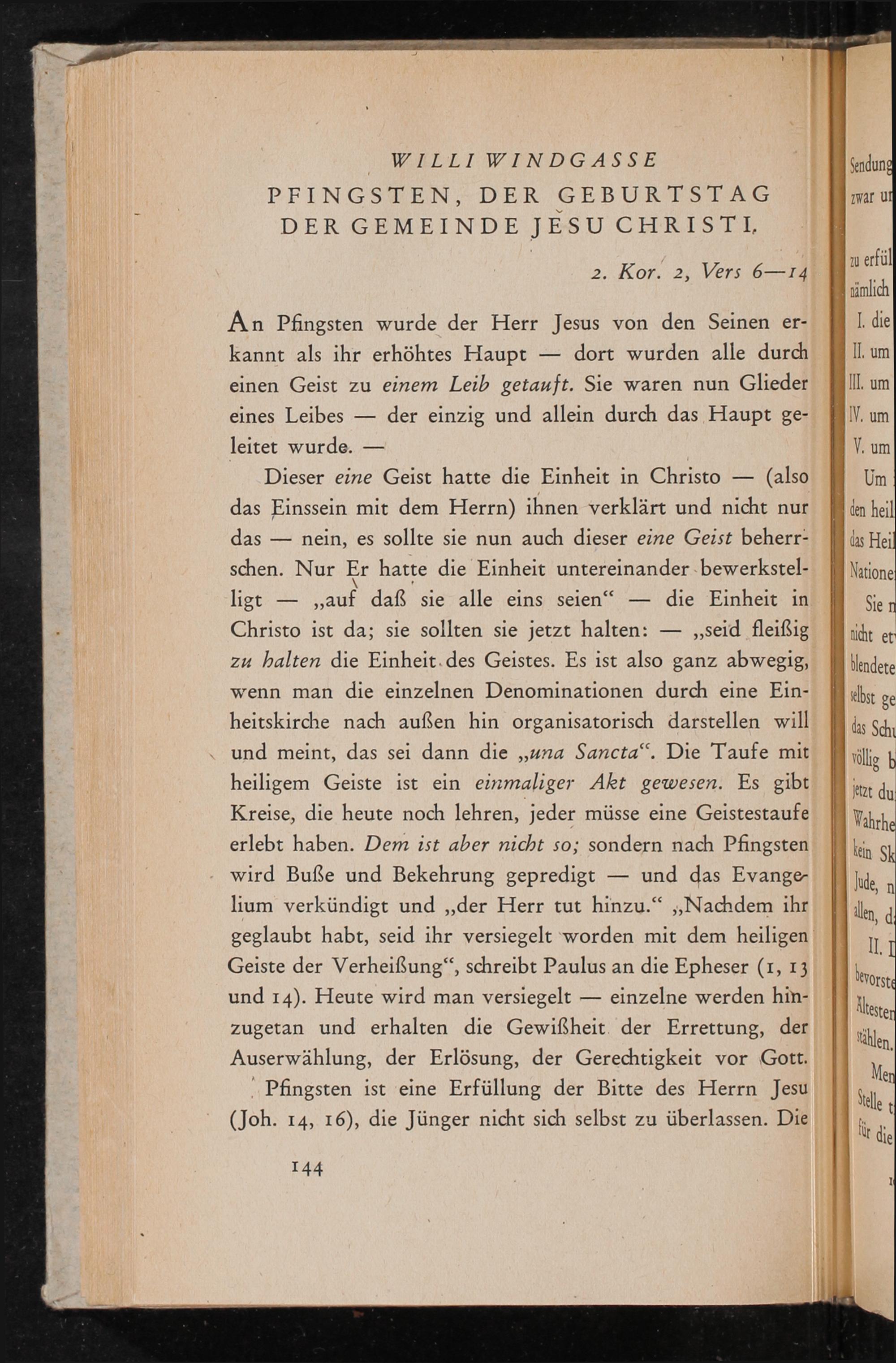 An Pfingsten wurde der Herr Jesus von den Seinen er- kannt als ihr erhöhtes Haupt— dort wurden alle durch einen Geist zu einem Leib getauft. Sie waren nun Glieder eines Leibes— der einzig und allein durch das Haupt ge- leitet wurde.—