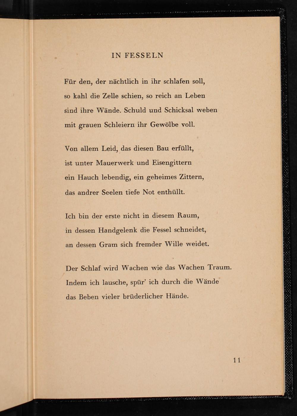 Für den, der nächtlich in ihr schlafen soll, so kahl die Zelle schien, so reich an Leben