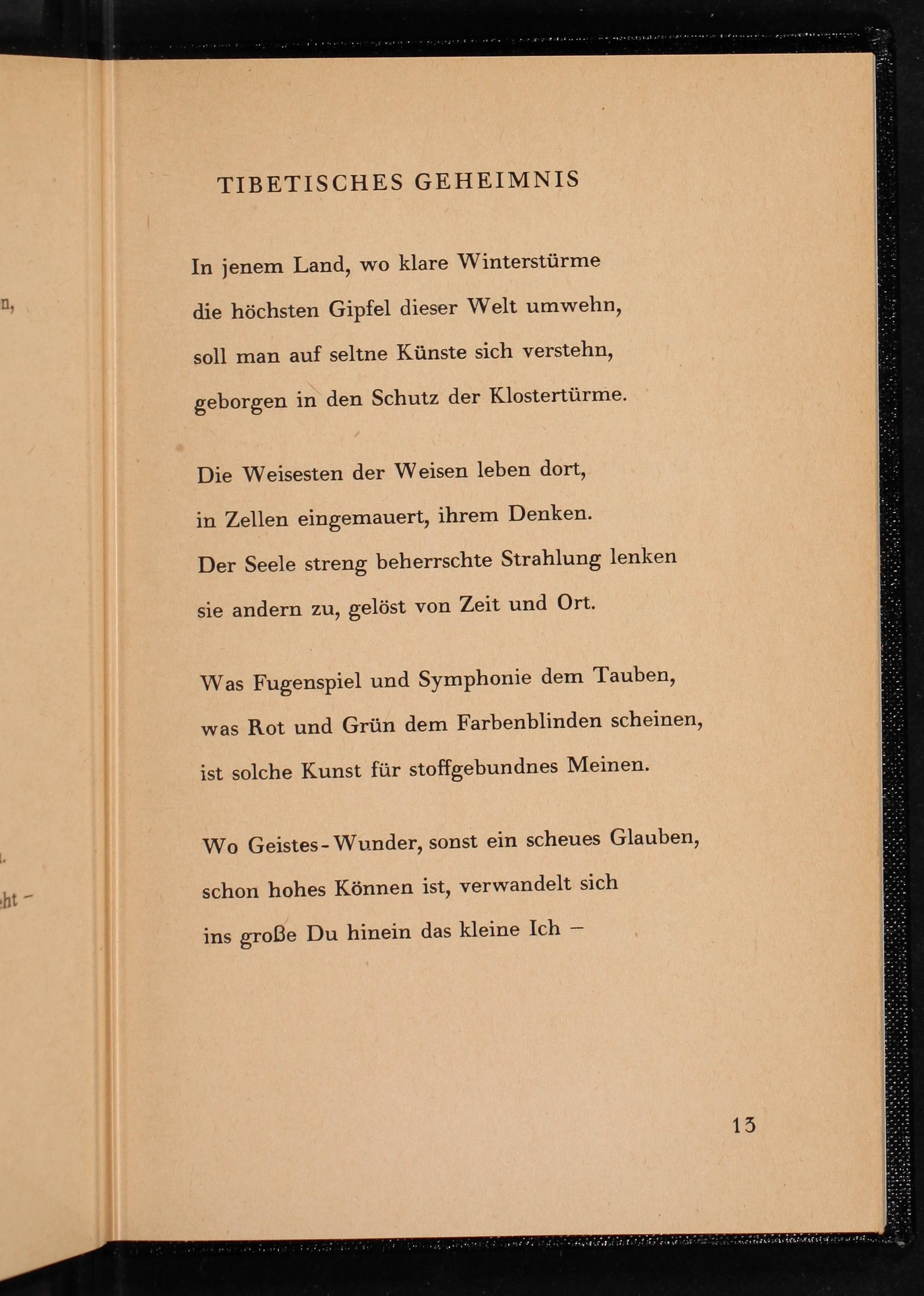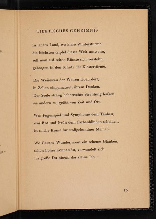 In jenem Land, wo klare Winterstürme die höchsten Gipfel dieser Welt umwehn, soll man auf seltne Künste sich verstehn,