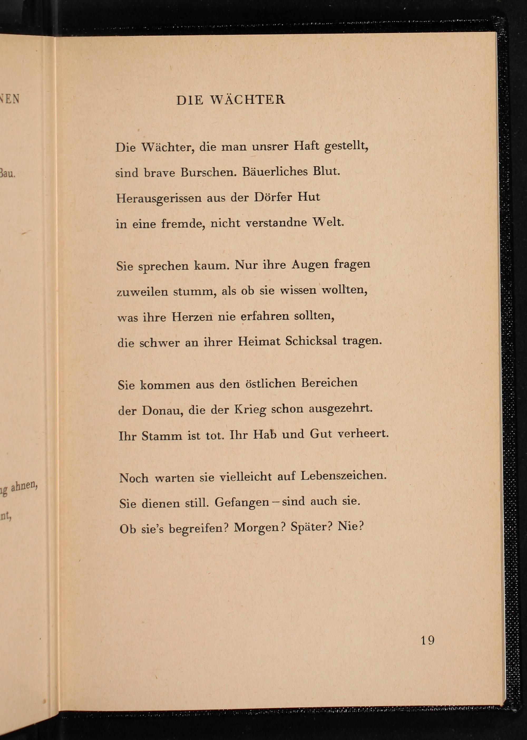 Noch warten sie vielleicht auf Lebenszeichen. Sie dienen still. Gefangen— sind auch sie.