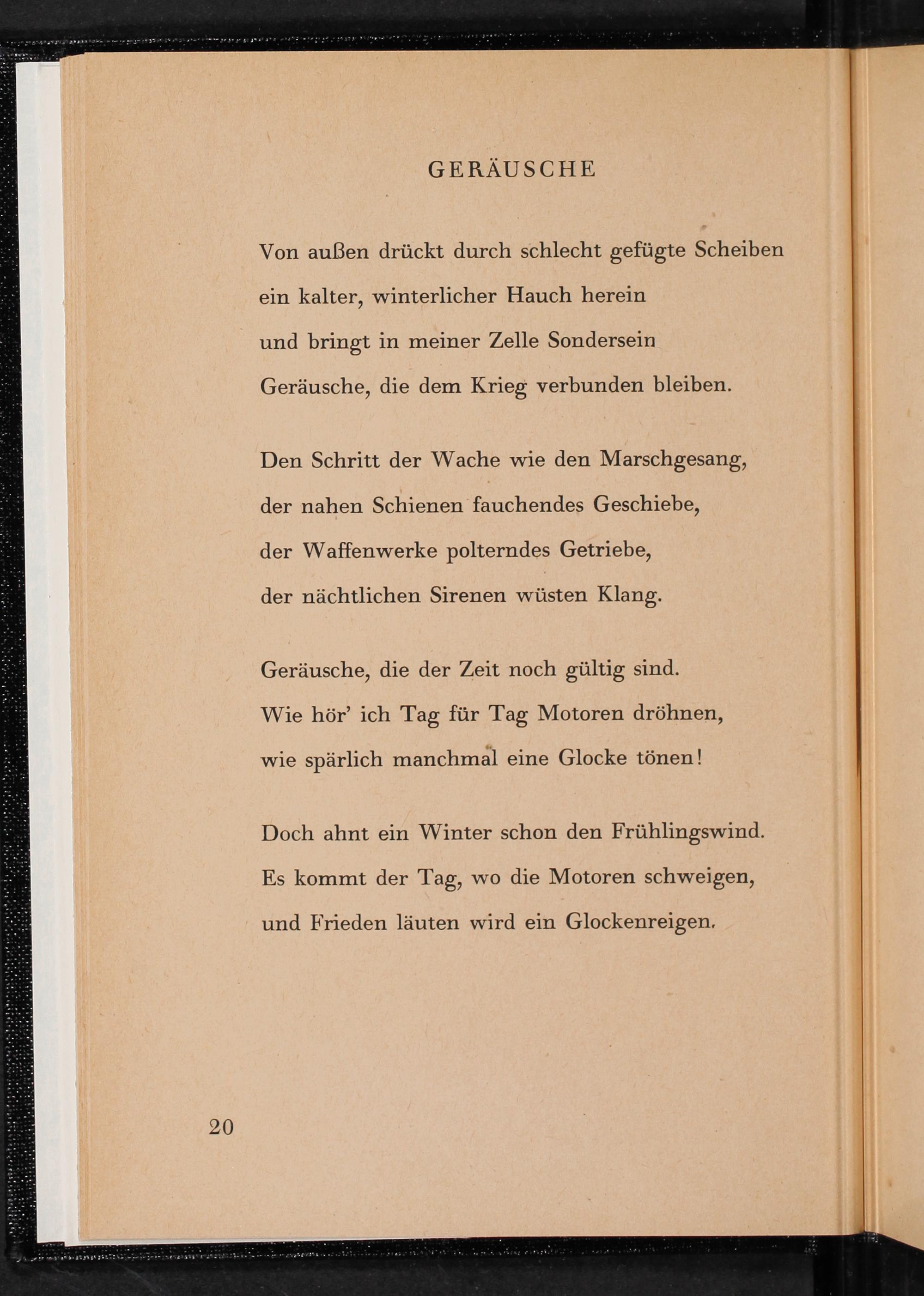 Den Schritt der Wache wie den Marschgesang, der nahen Schienen fauchendes Geschiebe, der Waffenwerke polterndes Getriebe,