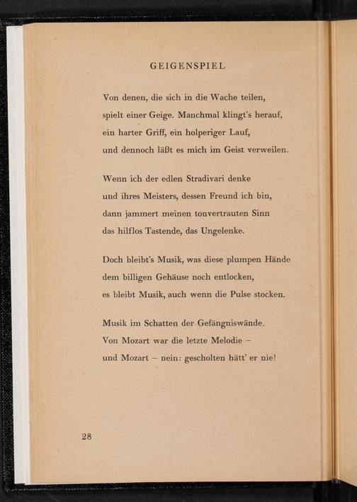 Von denen, die sich in die Wache teilen, spielt einer Geige. Manchmal klingt’s herauf, ein harter Griff, ein holperiger Lauf,