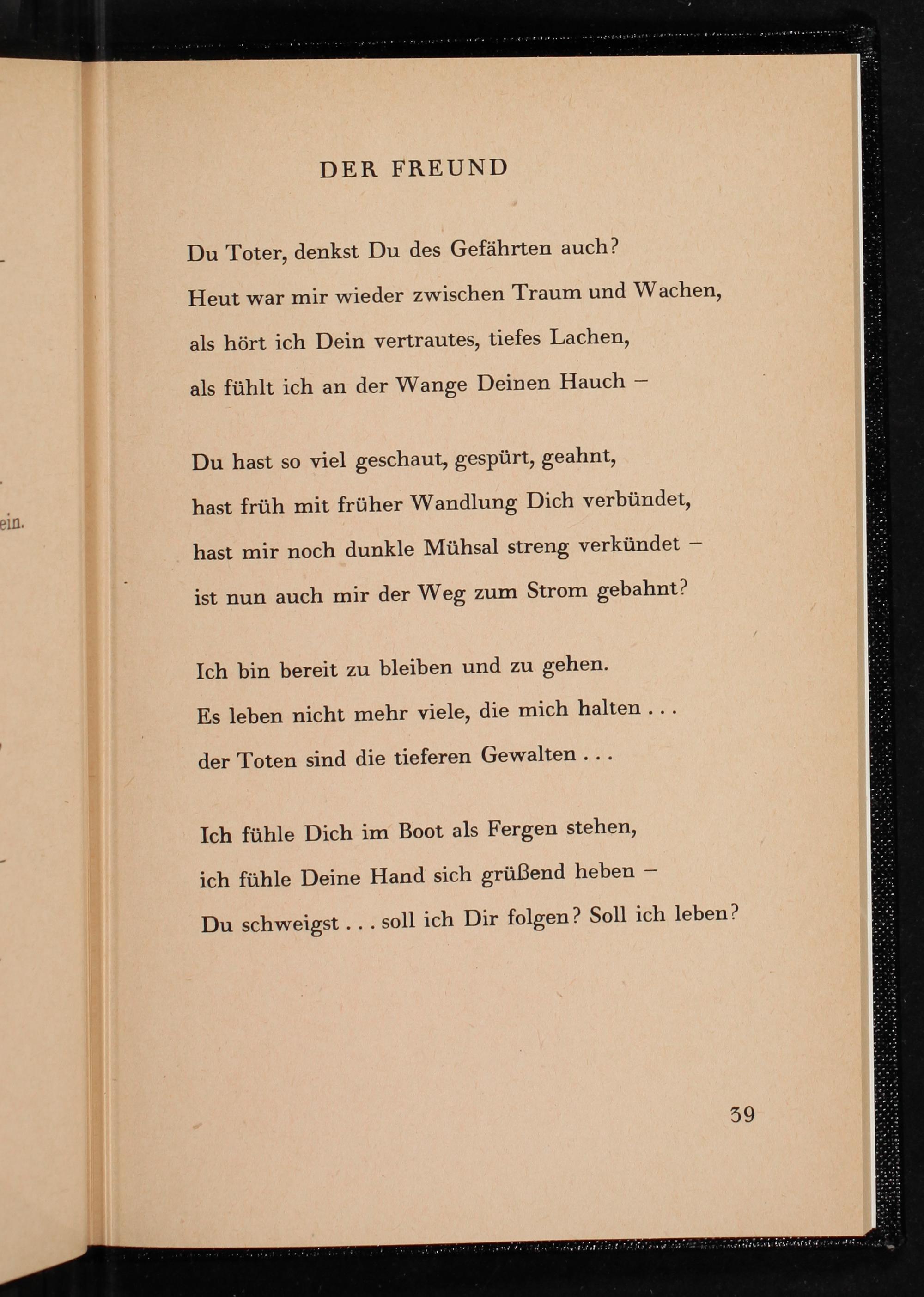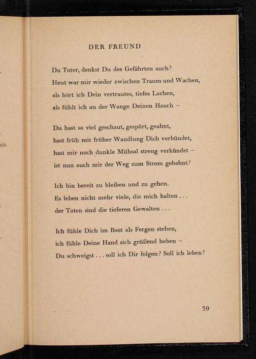 hast früh mit früher Wandlung Dich verbündet, hast mir noch dunkle Mühsal streng verkündet- ist nun auch mir der Weg zum Strom gebahnt?