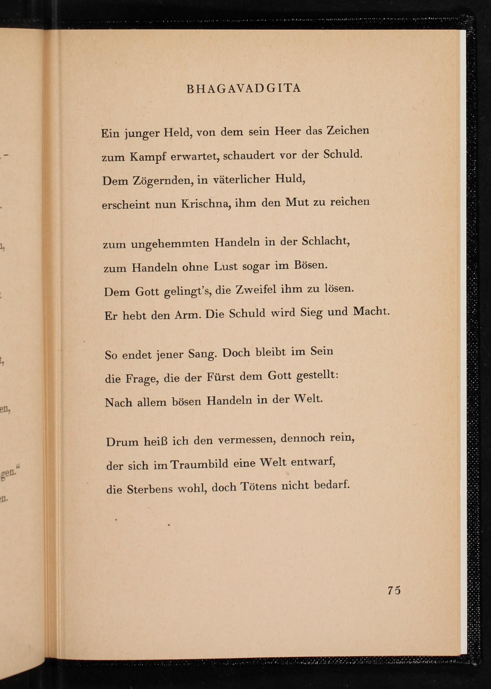 So endet jener Sang. Doch bleibt im Sein die Frage, die der Fürst dem Gott gestellt: