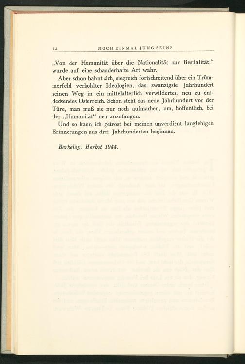 Aber schon bahnt sich, siegreich fortschreitend über ein Trümmerfeld verkohlter Ideologien, das zwanzigste Jahrhundert seinen Weg in ein mittelalterlich verwildertes, neu zu entdeckendes Österreich . Schon steht das neue Jahrhundert vor der Türe, man muß sie nur noch aufmachen, um, hoffentlich, bei der ,, Humanität" neu anzufangen.