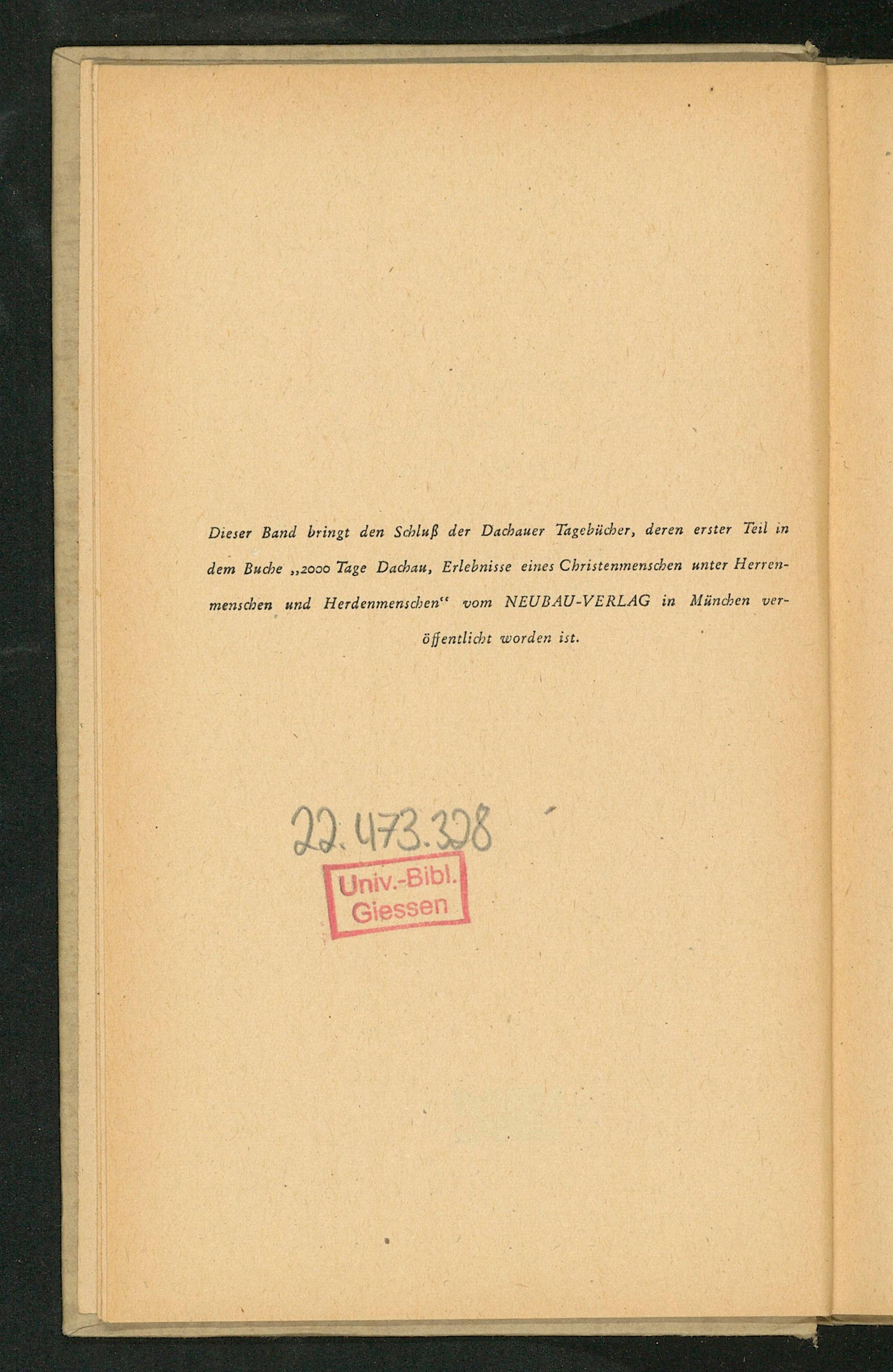 Dieser Band bringt den Schluß der Dachauer Tagebücher, deren erster Teil in