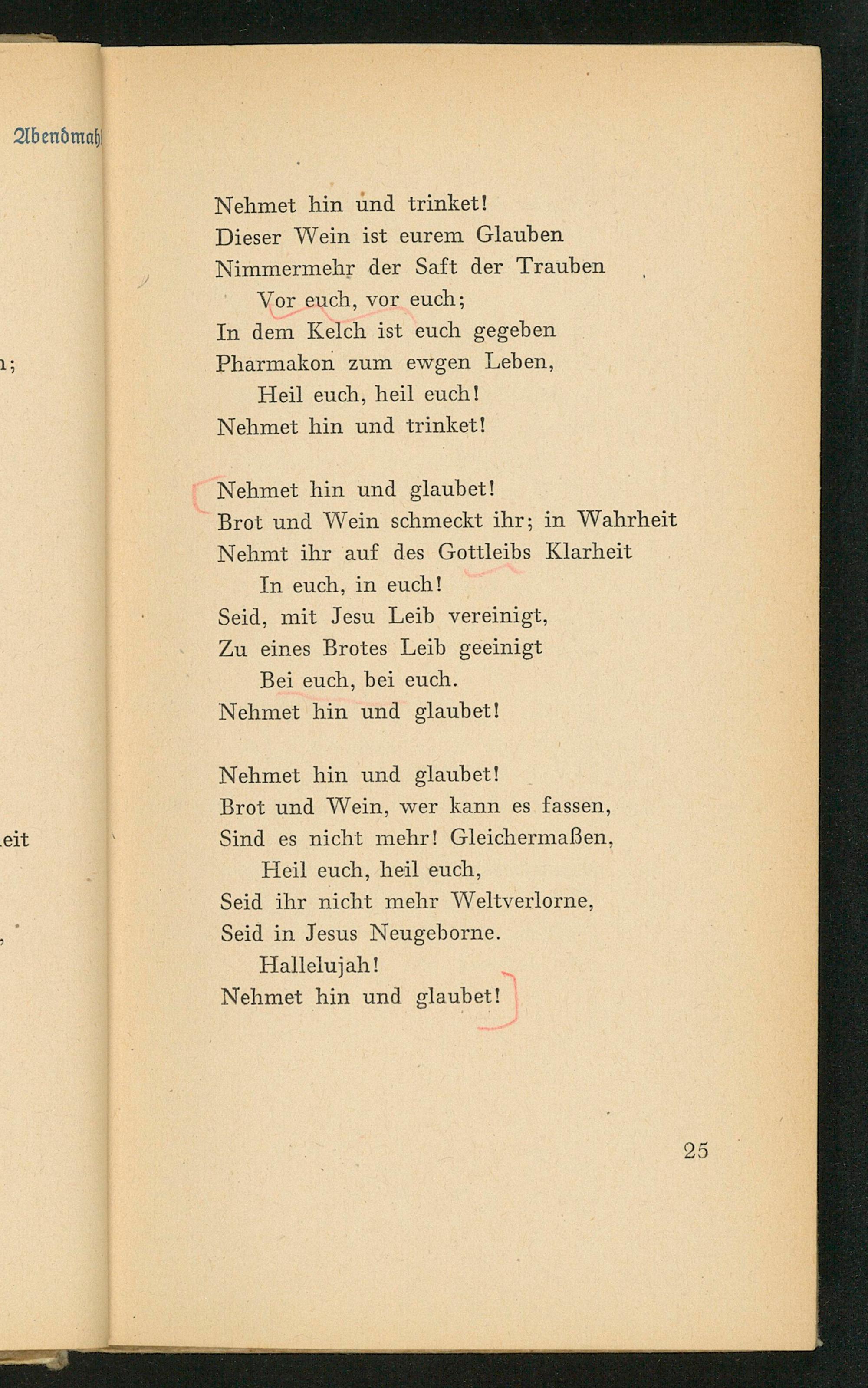 In dem Kelch ist euch gegeben Pharmakon zum ewgen Leben, Heil euch, heil euch! Nehmet hin und trinket!