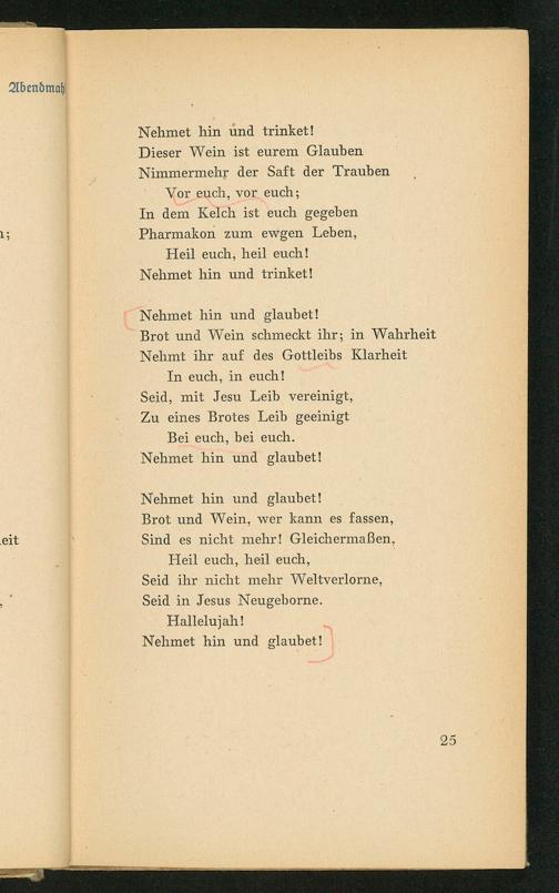 Dieser Wein ist eurem Glauben Nimmermehr der Saft der Trauben
