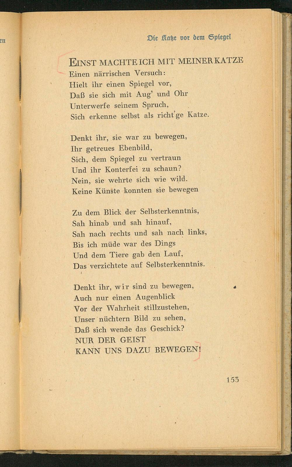 Und dem Tiere gab den Lauf, Das verzichtete auf Selbsterkenntnis.